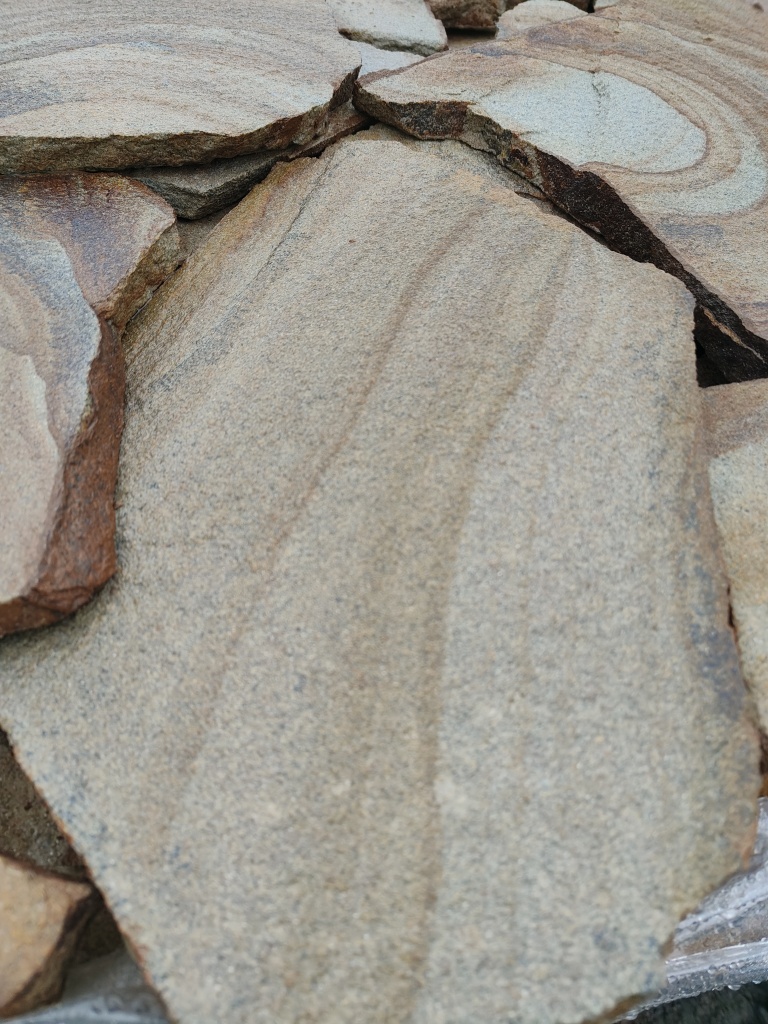 При заказе камня одного вида с одного месторождения в разные периоды времени, а тем более в разные года - возможны отклонения в цветовом оттенке камня, не влияющие на прочностные характеристики и срок службы материала. В практике применения плитняка в строительстве, различия в цветовых оттенках и однородности рисунка, а особенно в условиях ручного производства и добычи камня допустимы и не являются браком, дефектом, препятствующим использованию облицовочного материала.